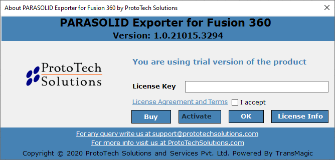 ProtoTech PARASOLID exporter for Fusion 360®-Trial