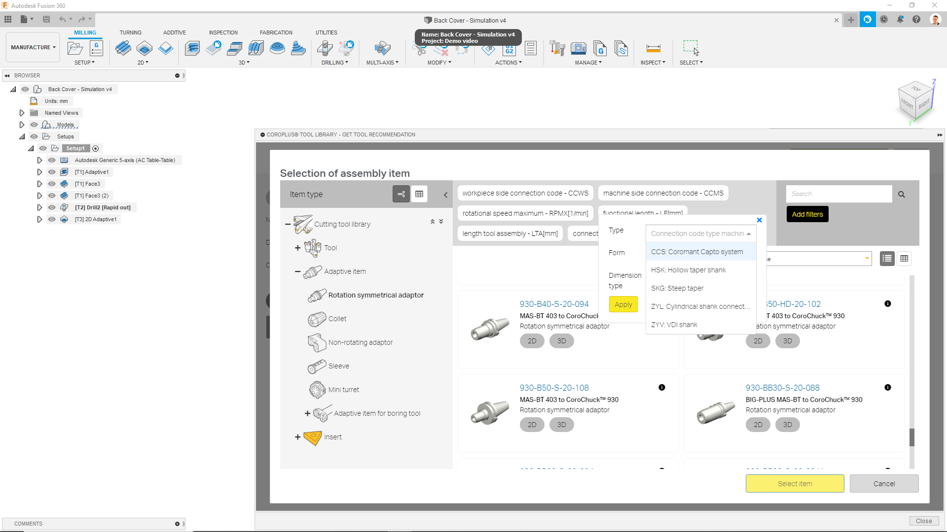 Super convenient to get tool recommendations and compatible assemblies (incl. cutting data automatically transferred to F360) without having to dig through catalogs and databases by myself. Also works with other tool vendor's catalogs.