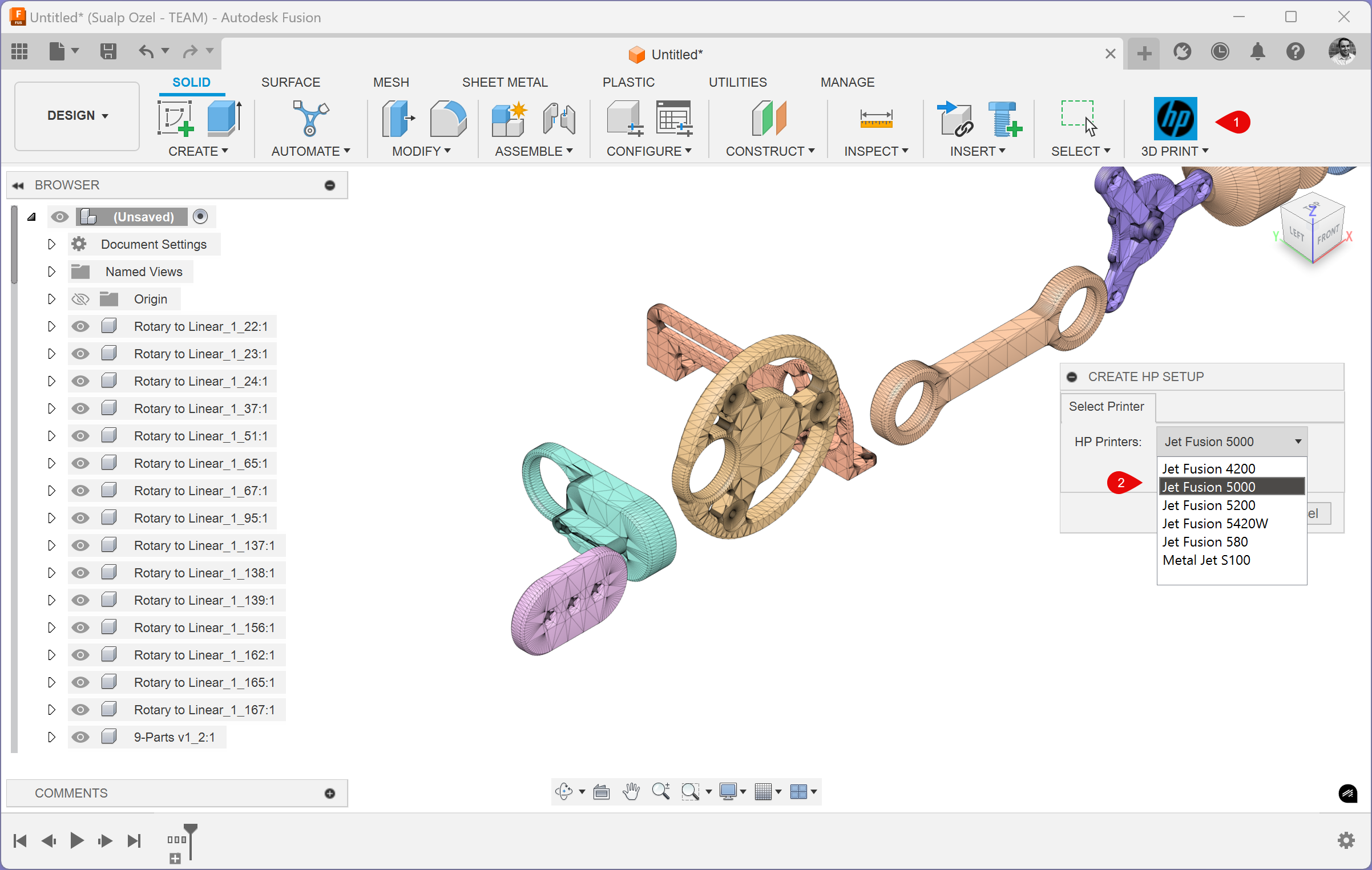 - changed the preselected printer to MJF 5000 when creating an additive setup using the HP app within the Design workspace of Fusion