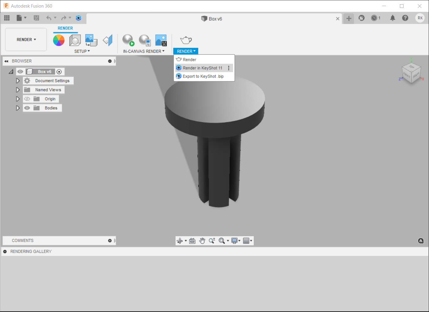 It’s the highest level of integration between your Fusion session and KeyShot, allowing you to export your geometry directly to KeyShot for rendering and keeping it updated with KeyShot’s LiveLinkingTM technology.