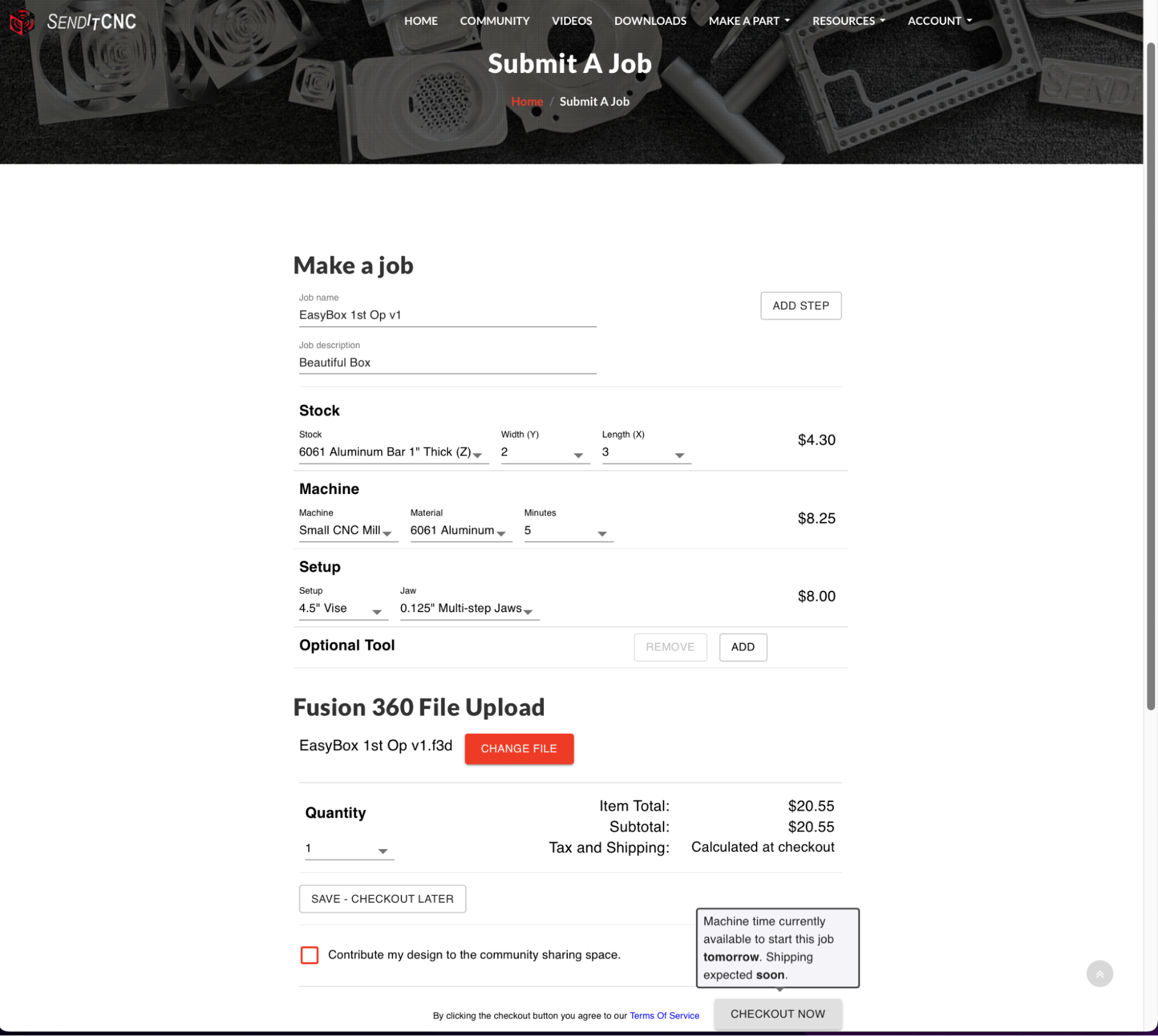 The SendItCNC add-in helps you take an Autodesk® Fusion® design, quickly make a CNC setup, and after you add CAM operations, send it to a CNC machine in the cloud to be made and immediately shipped to you.