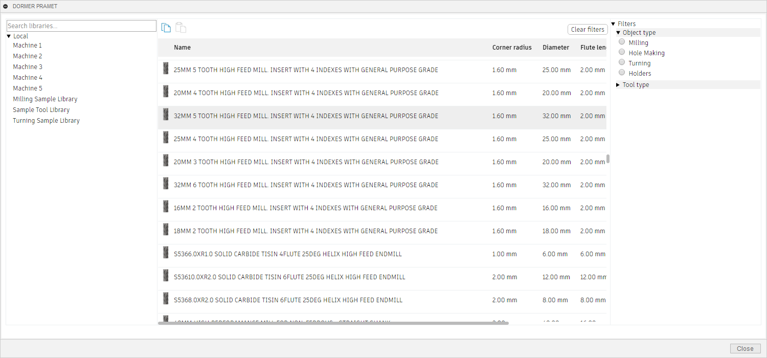 The Dormer Pramet tool library add-in gives you access to Dormer Pramet application products for Autodesk® Fusion 360™.
