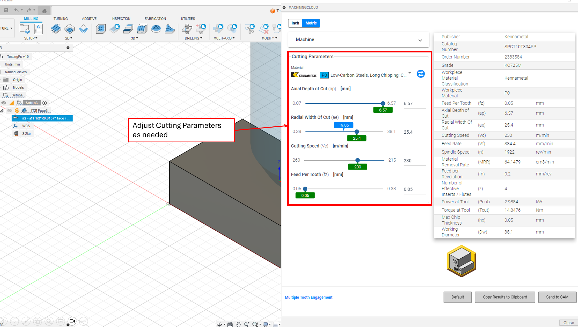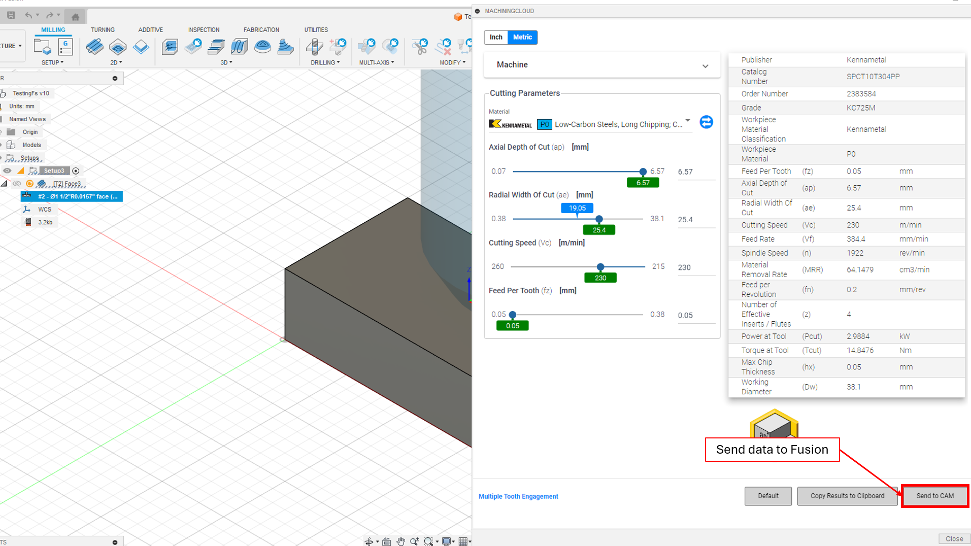 Through the Feeds and Speeds add-in, you can quickly and easily retrieve feeds and speed data for your tools. MachiningCloud supports all tool types and numerous top manufacturers in the industry, having access to data provided directly by the manufacturer.