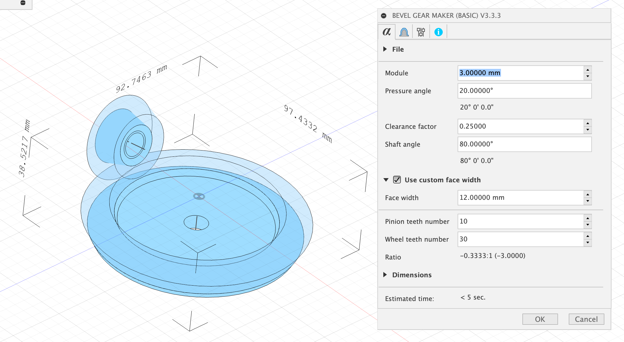 After a few click you can create the perfect bevel gears. Highly recommended
