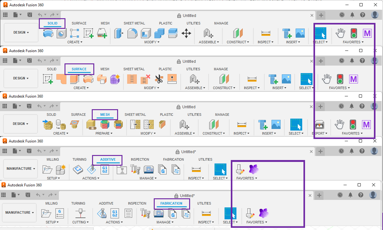Toolbar & Shortcuts Editor also provides the ability to add commands to any toolbar panel, including a Favorites panel, which is visible regardless of which toolbar tab you select.