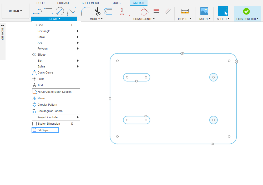 Fill Gaps in Sketch add-in scans a sketch and attempts to detect and fill gaps between endpoints of lines and curves in the sketch. It is particularly useful in an imported woodworking sketch geometry.