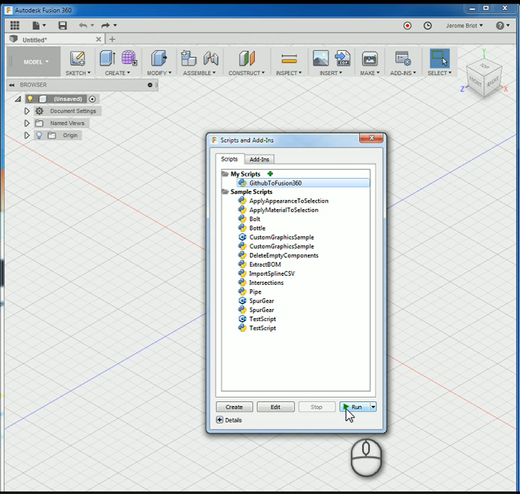 The script or the add-in is now installed in Fusion 360.