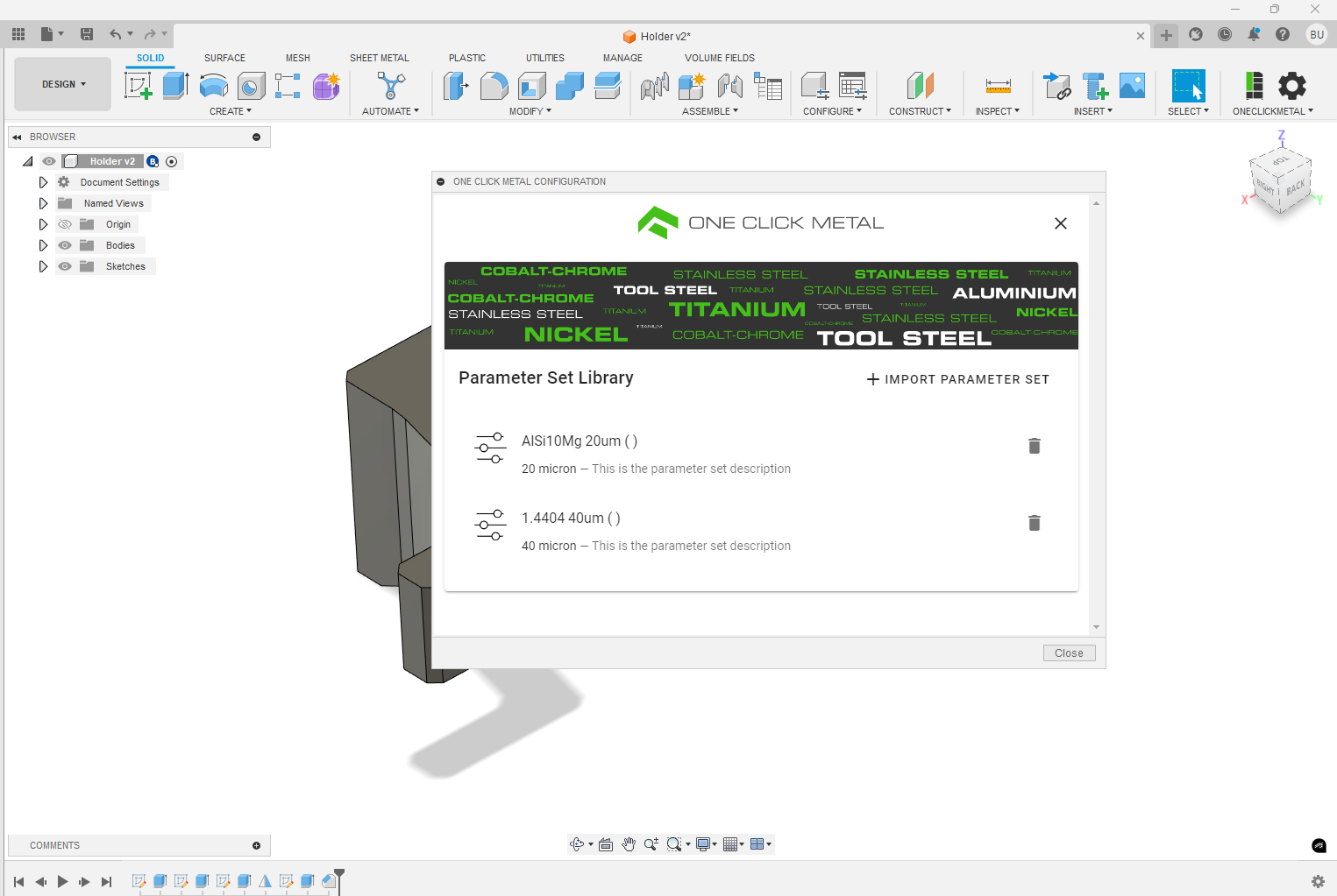 One Click Metal for Autodesk® Fusion®