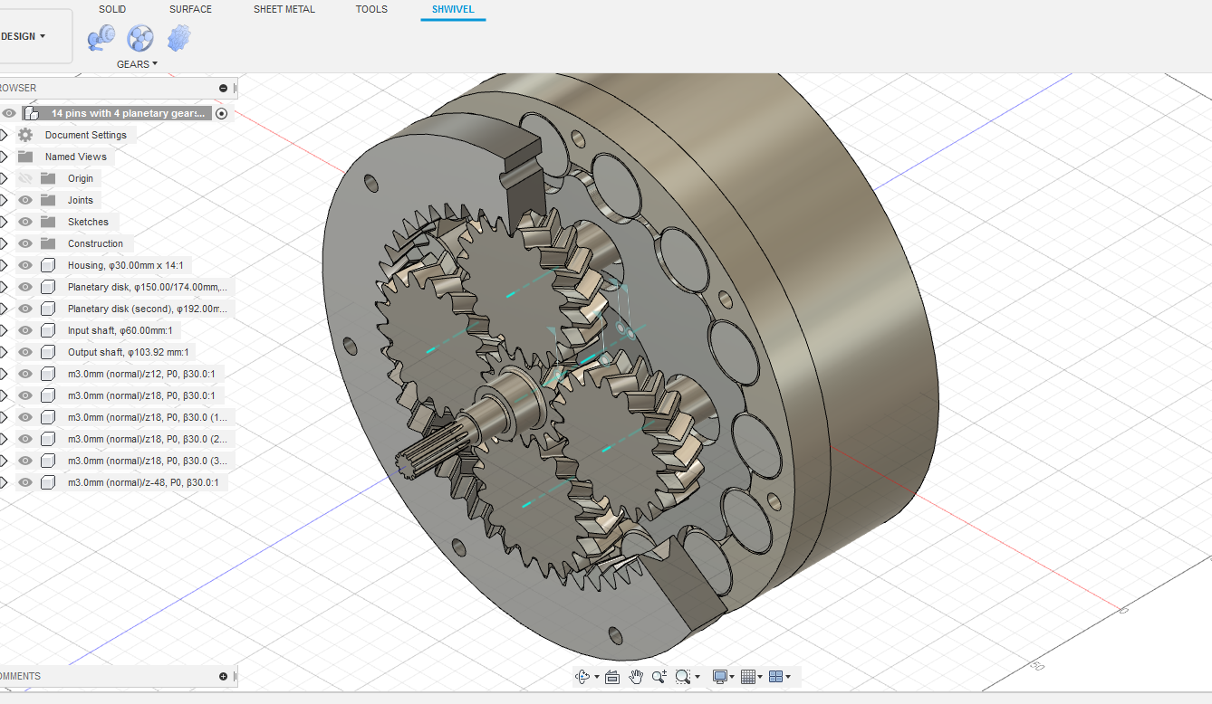 The plugin creates cycloidal drives of one or two planets. Units can be switched between millimeters and inches. You can change chosen parameters like the number of housing pins/rollers/bearings, the number of output bolts, spacing radiuses, eccentricity, diameters of central and side holes of planets and more. Parameters and descriptions of functions are available in Guide.pdf. Information about invoices is available in Consulting Services section (please click More to expand the section).