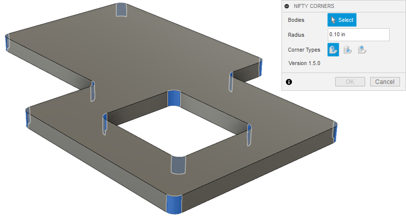 2. The workaround to use Nifty Dogbone with Manufacturing Models has been removed since Fusion has fixed the underlying problem, and the workaround is no longer needed.