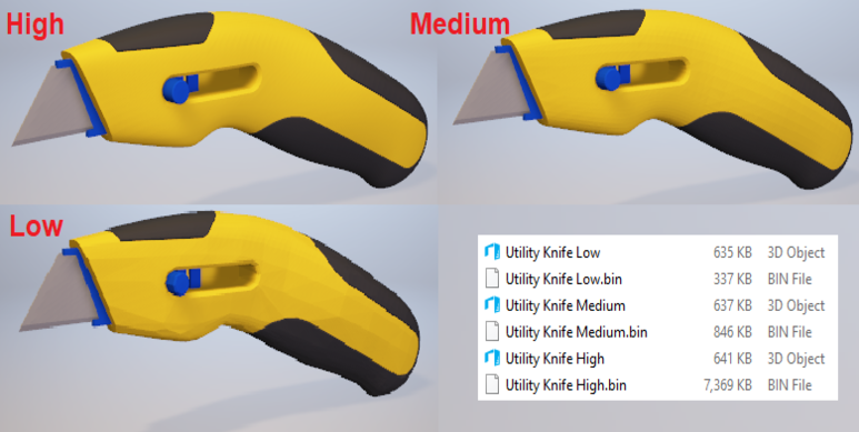 Unlike the other OBJ exporters, this one exports the bodies seperately which is great! I would like the option to flip the axis so it is oriented correctly in Blender, most of the other exporters have this feature. It would also be nice to have more control over the Facet Tolerance, right now there are only 4 options. This is still the best OBJ exporter out of all the ones I have tried.