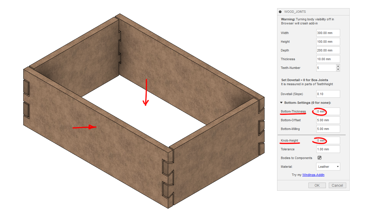 It draws for you automatically a dove-joints or a box-joints. It also draws the milling for the bottom.