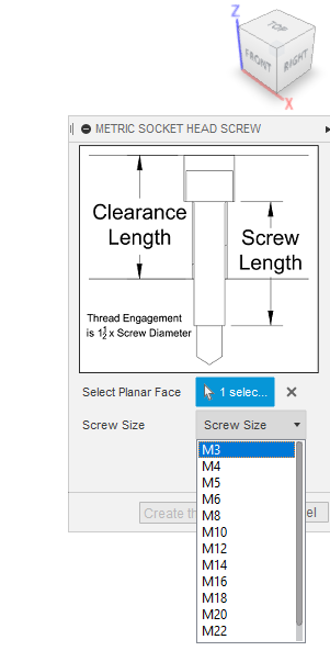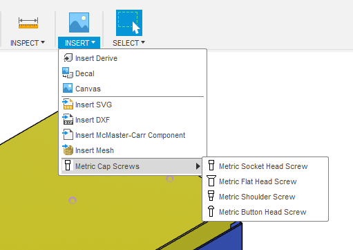 This app is to insert socket head cap screws, flat head cap screws, shoulder screws and button head screws into your assembly.