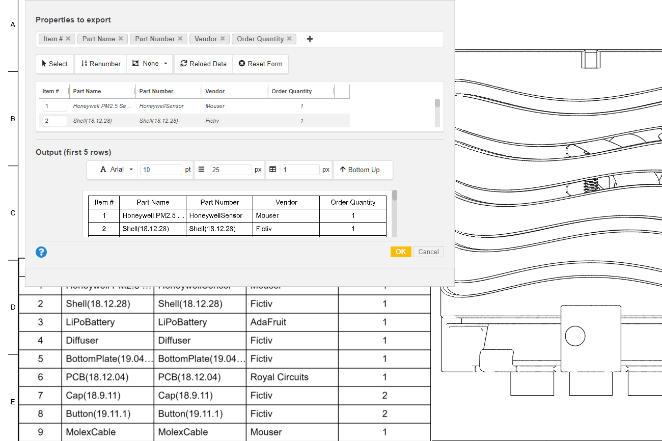 View your BOM in-app, as an editable table or as a part-by-part properties form.