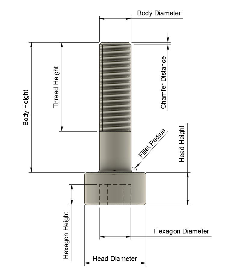 Chamfer Distance: distance of the 45-degree chamfer on the body shaft