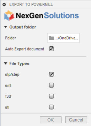 Export to Autodesk® PowerMill® was built for Powermill users who are looking to use Autodesk® Fusion 360® for their CAD work. It includes, but is not limited to Jigs and Fixture, Model Modification, as well utilizing Fusion 360 for machining of simple features followed by quickly exporting the file out for PowerMill every time the Fusion 360 file is saved. This app also alows for you to auto create local backups to a location of your choosing.