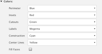 The plugin offers a “Fill Faces” option, which, when enabled, fills the enclosing faces of a sketch using the selected color settings for perimeter, cutouts, or inset.
