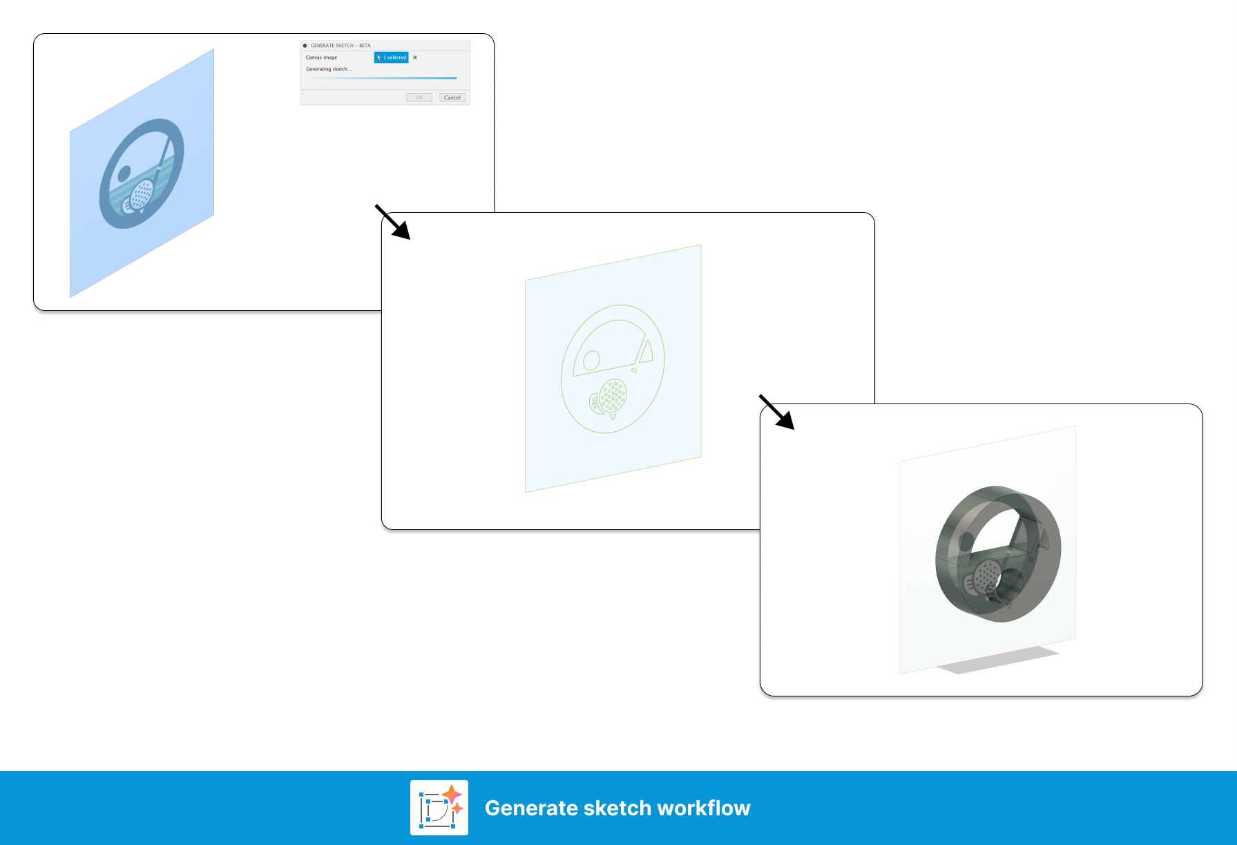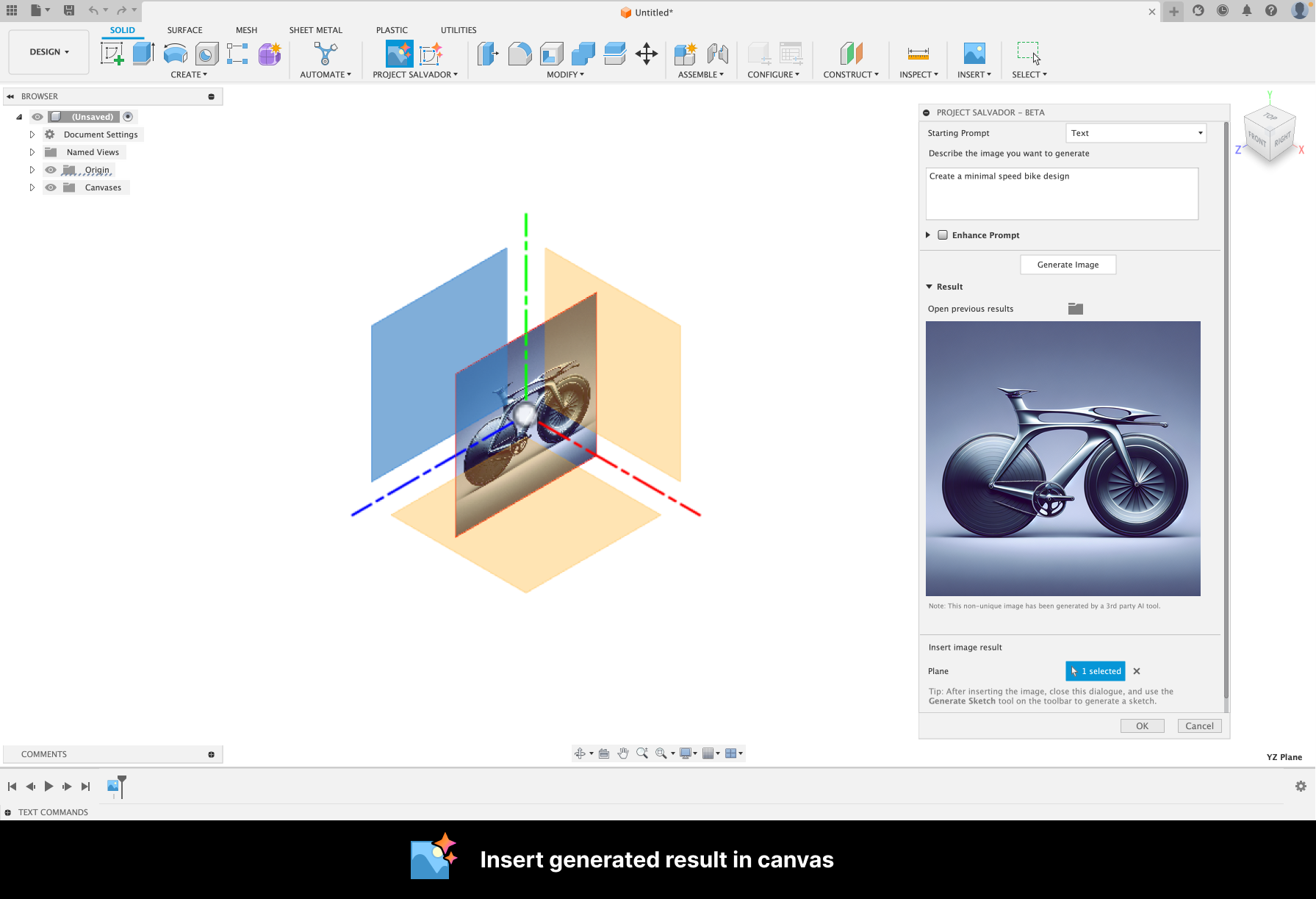 This add-in gives you the capability to create AI-generated images inside Fusion. After creating and adding the image to the canvas, you can use the image for further design inspiration or to automatically generate a sketch.