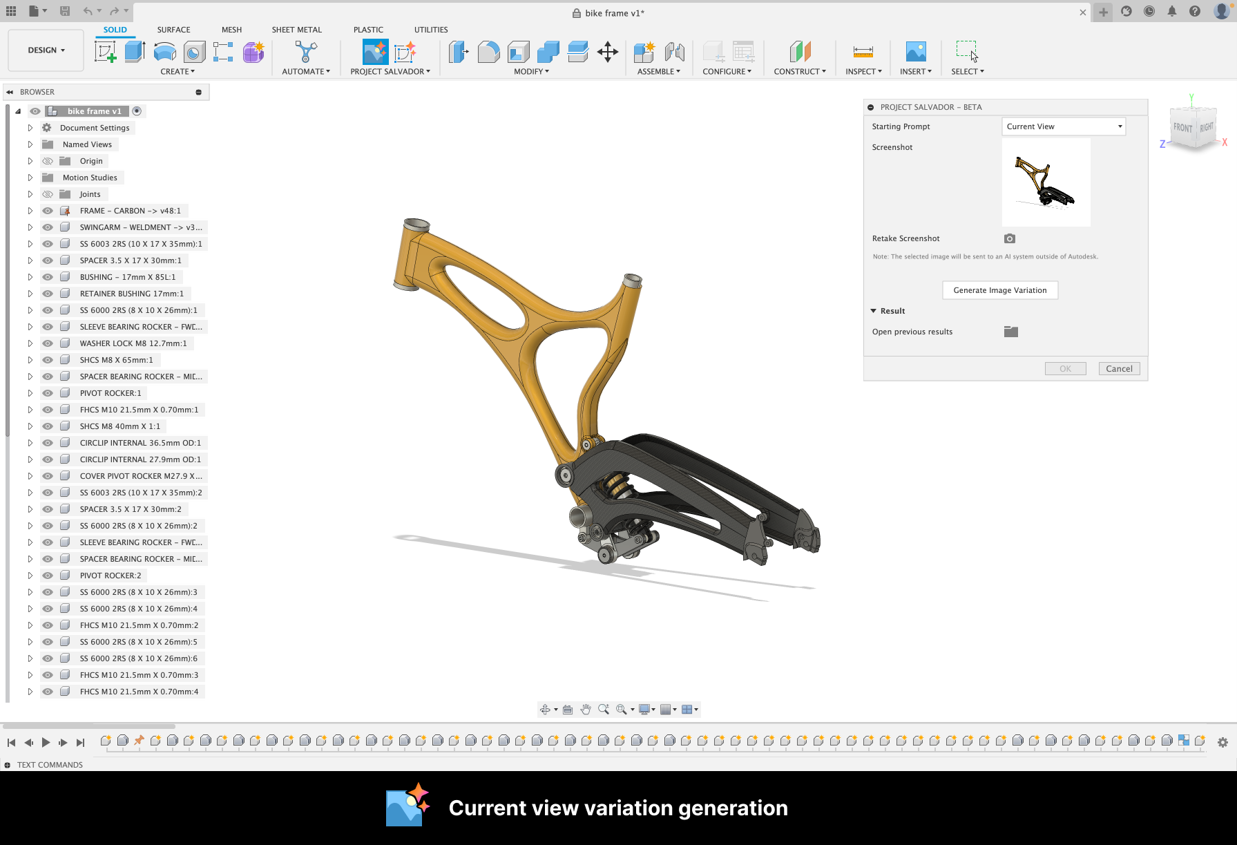 Project Salvador (Beta) is an Autodesk® Fusion® add-in that provides access to third-party Generative AI models through the APIs. Use it for product design ideation, conceptual design variations and sketch creation in Fusion.