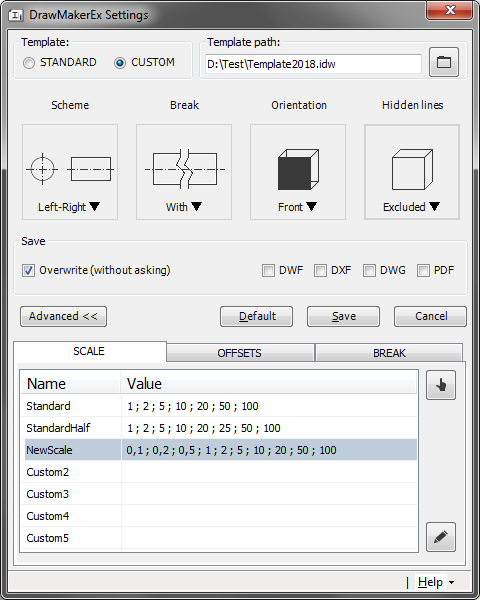 - Advanced settings for output drawings (scale, break, hidden lines, offsets)