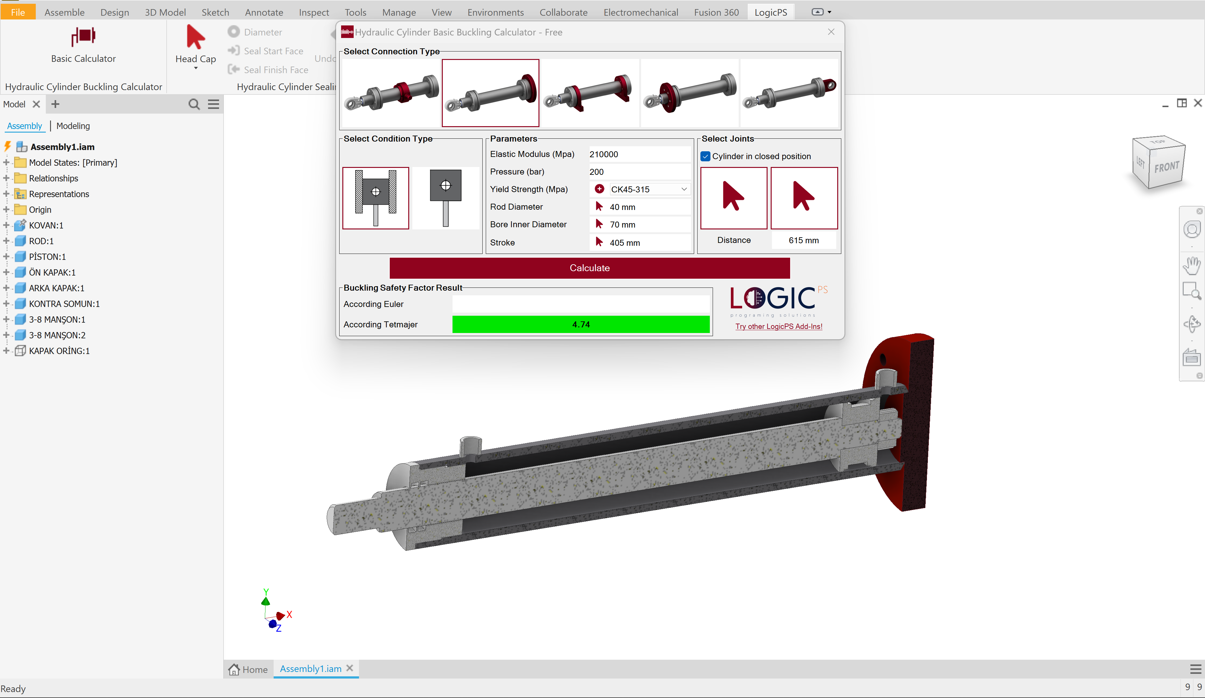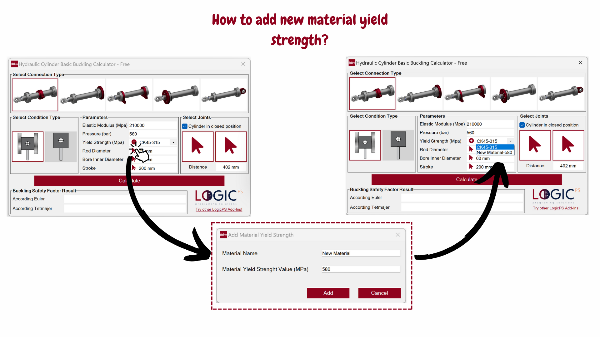 How to use Logic Hydraulic Cylinder Basic Buckling Calculator add-In