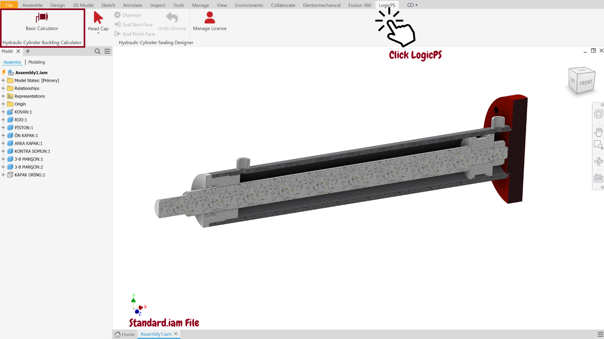 2. Locate and click the "LogicPS" panel. Then execute Logic Hydraulic Cylinder Basic Buckling Calculator add-in.