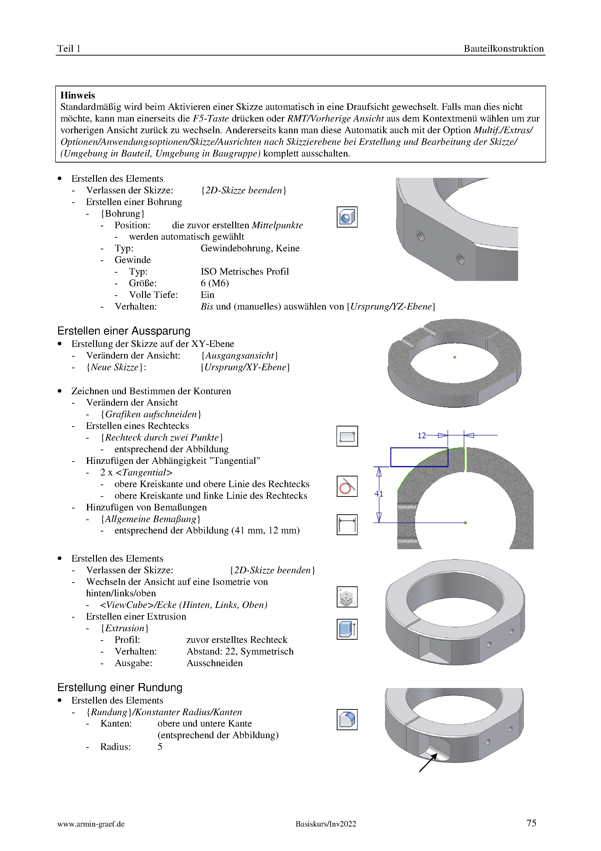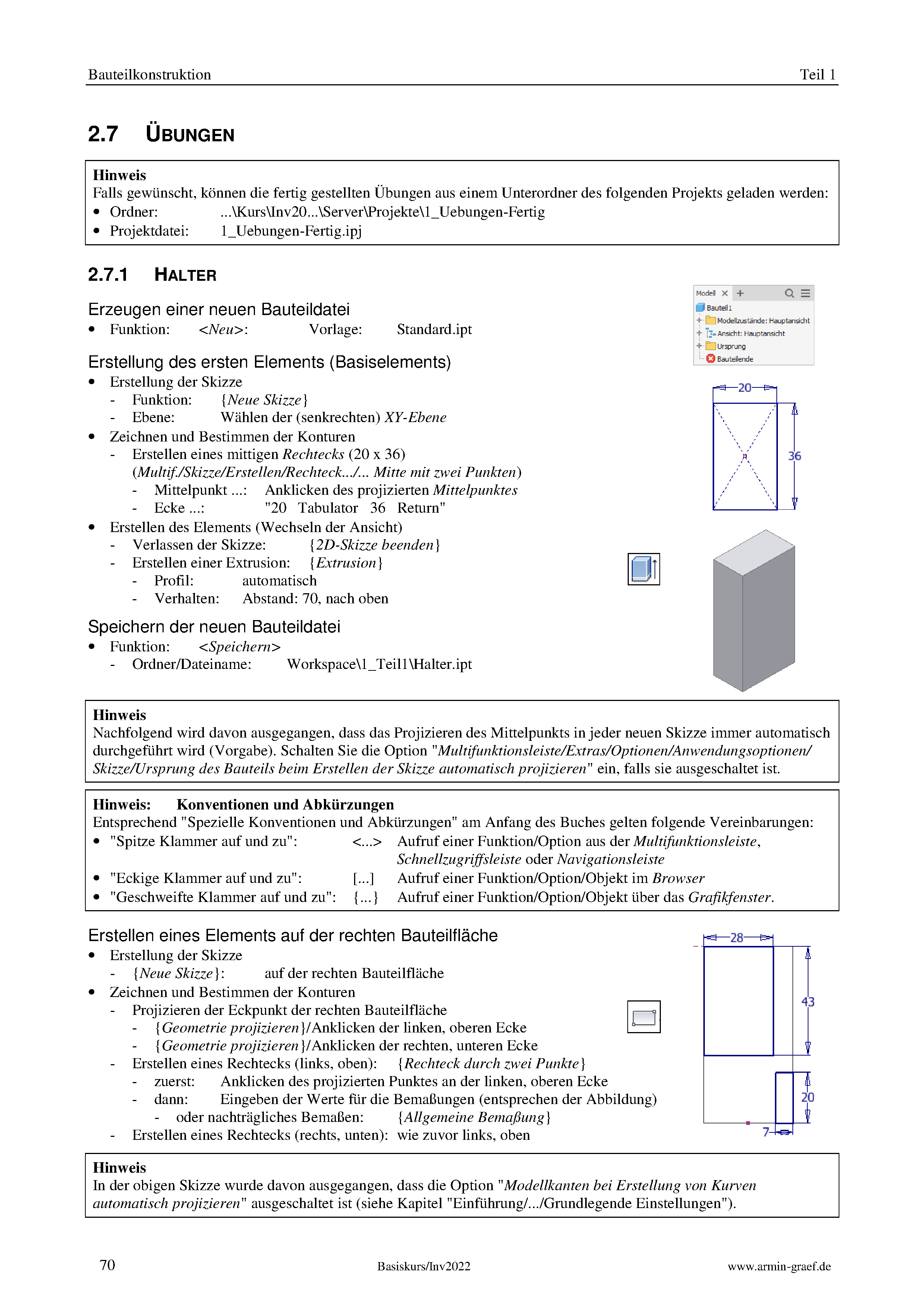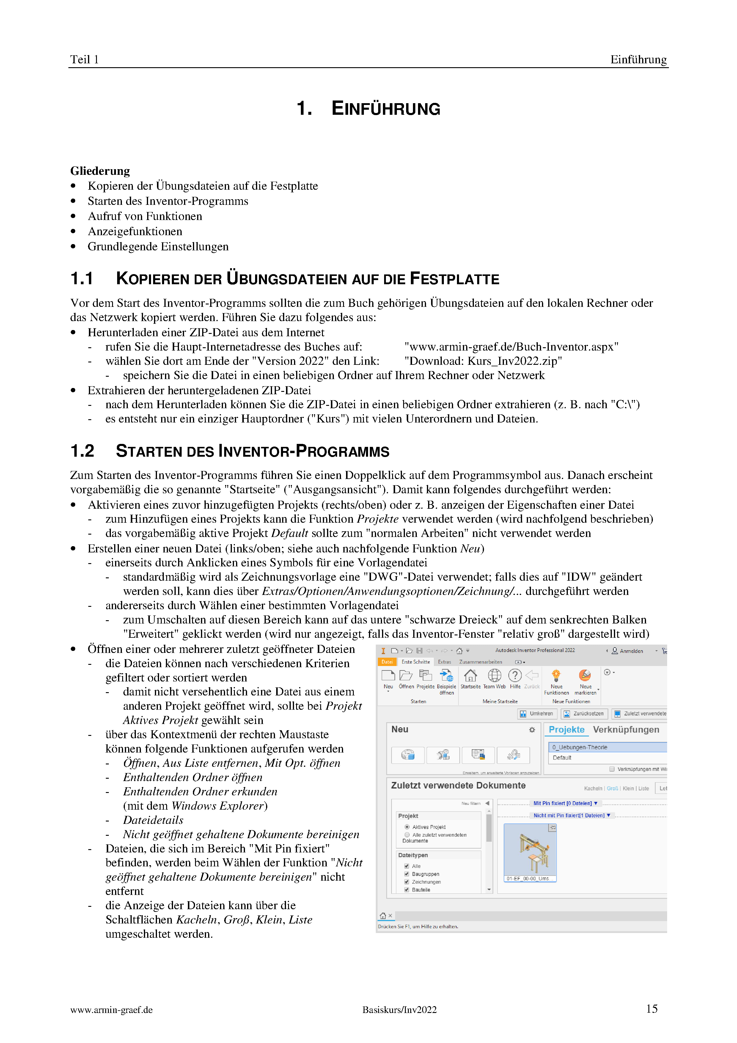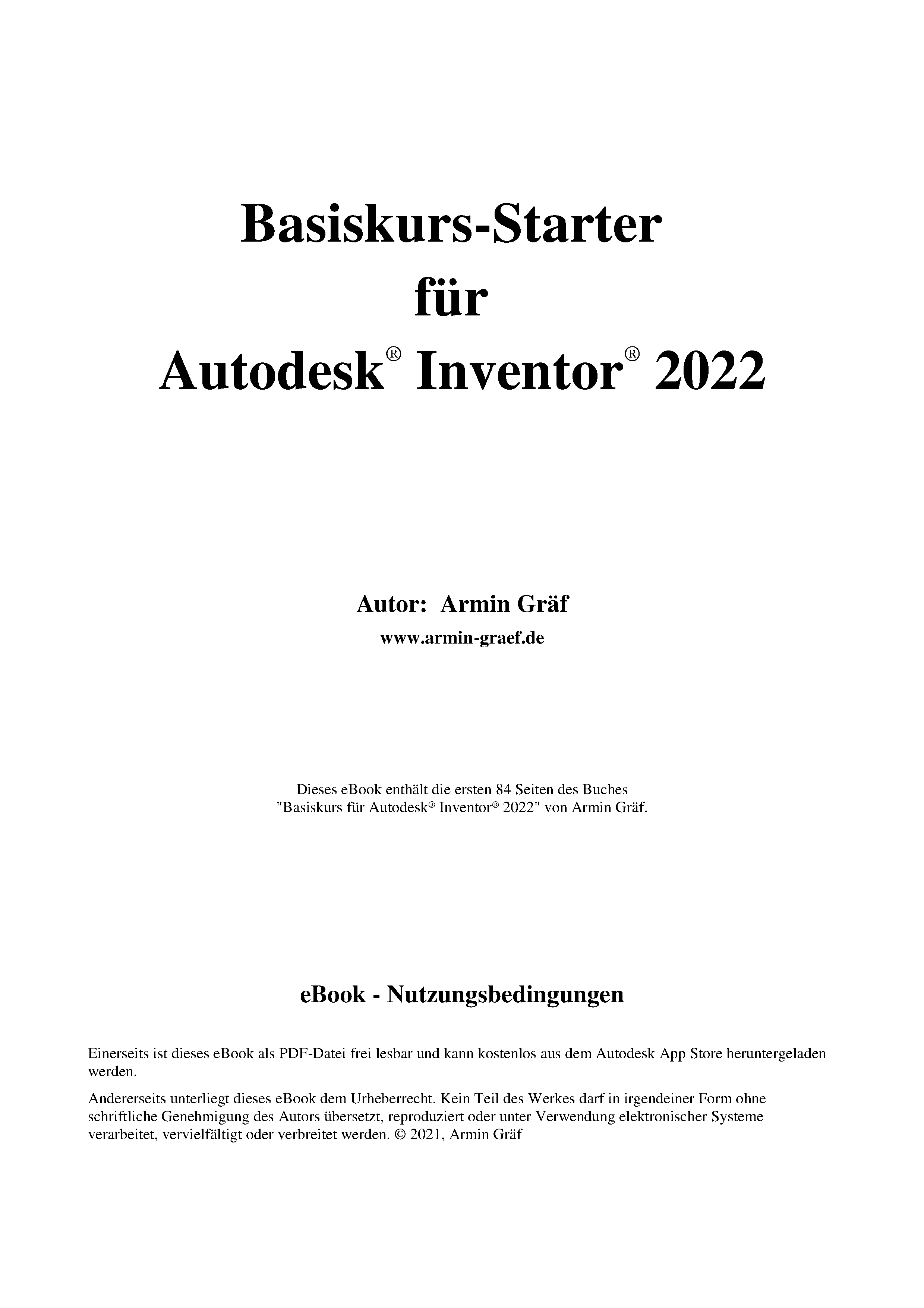 Ein kostenloses frei lesbares eBook (PDF-Datei, 84 Seiten), welches die ersten beiden Kapitel des Buches "Basiskurs für Autodesk® Inventor® 2022" von Armin Gräf enthält.