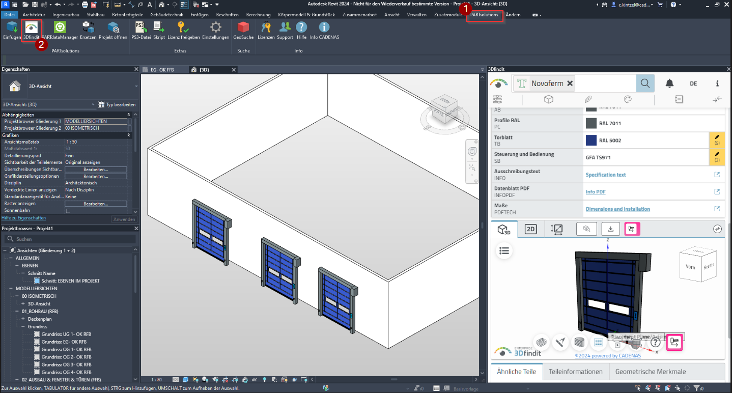 Mit dem Plugin 3Dfindit powered by CADENAS haben Ingenieure, Konstrukteure, Objektplaner und Architekten Zugriff auf Millionen 3D CAD, CAE und BIM Modelle aus über 6.000+ herstellerzertifizierten Produktkatalogen. Die gewünschten Komponenten können individuell konfiguriert und direkt ins existierende Projekt im -Tool (Autodesk® AutoCAD®, Autodesk® Revit®, Autodesk® Inventor®) eingefügt werden.