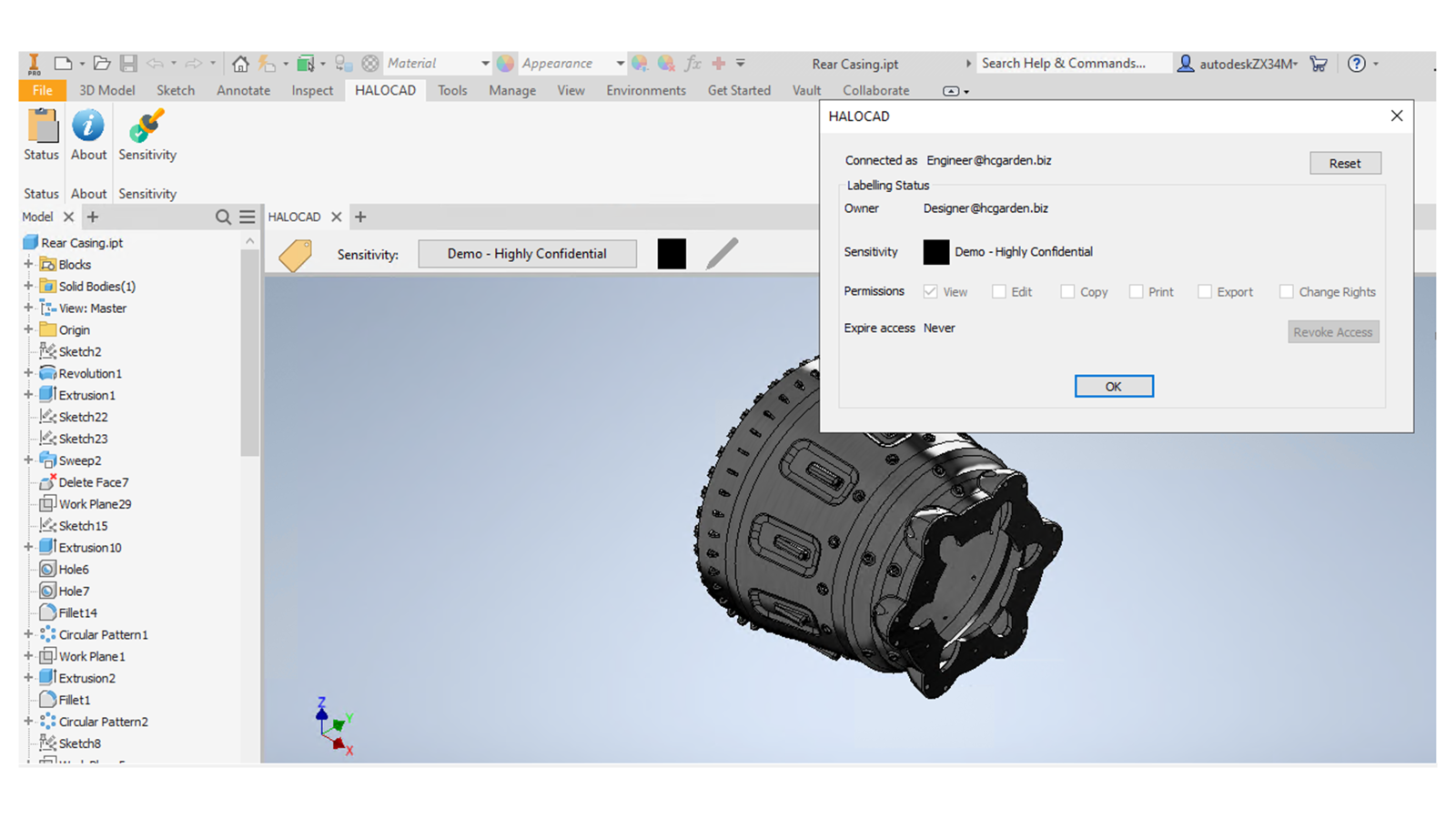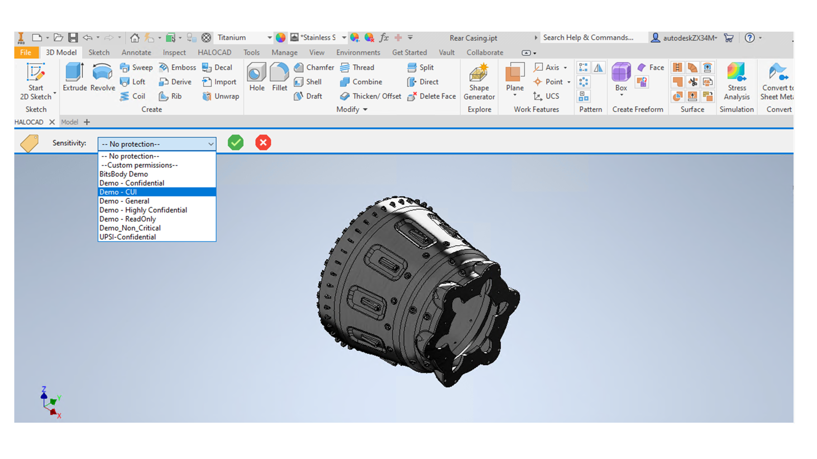 In addition, Autodesk Inventor applications can seamlessly consume those files protected with HaloCAD. As HaloCAD enforces usage privileges defined by the protection label, the native user experience within the CAD application is preserved.