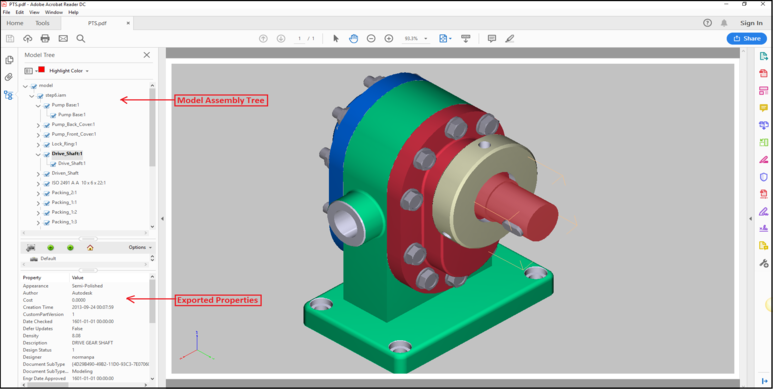 3DPDF Exporter For Autodesk® Inventor® exports solid and wire bodies to a secured and encrypted 3D PDF file.