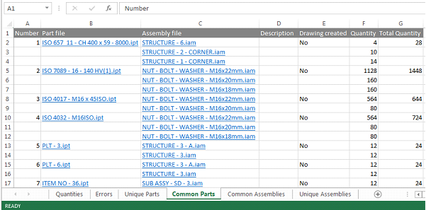 This tool computes number of occurrences (total no of part/assembly used), referenced in the selected assembly. This can be assigned to Custom iproperty as per user requirement, or users can also opt only for excel report. So users will have a quantity of sub assemblies along with parts for all levels.