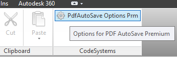 Start PdfAutoSave Options under Tools tab > CodeSystems panel.