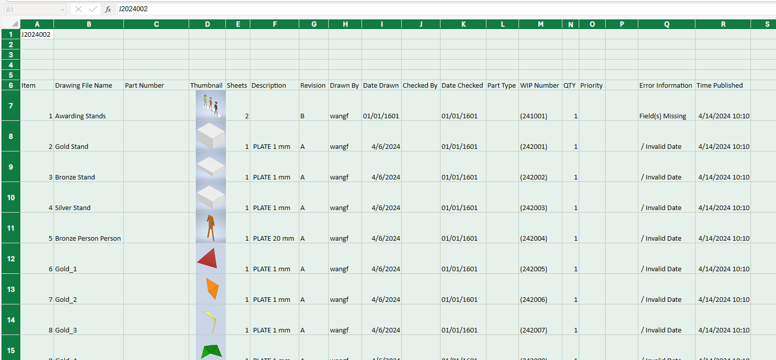 5. For sub-WIPs, an Excel file with part numbers and sub-WIP numbers is required. The app will look up WIP numbers by the part number automatically.