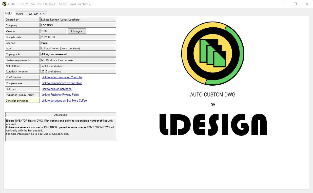 - Compatibility with newest INVENTOR - Added possibility to export .idw file to PDF under .idw file name - You can now add IDW file name in "iProperties - key creator" - Other fixes |