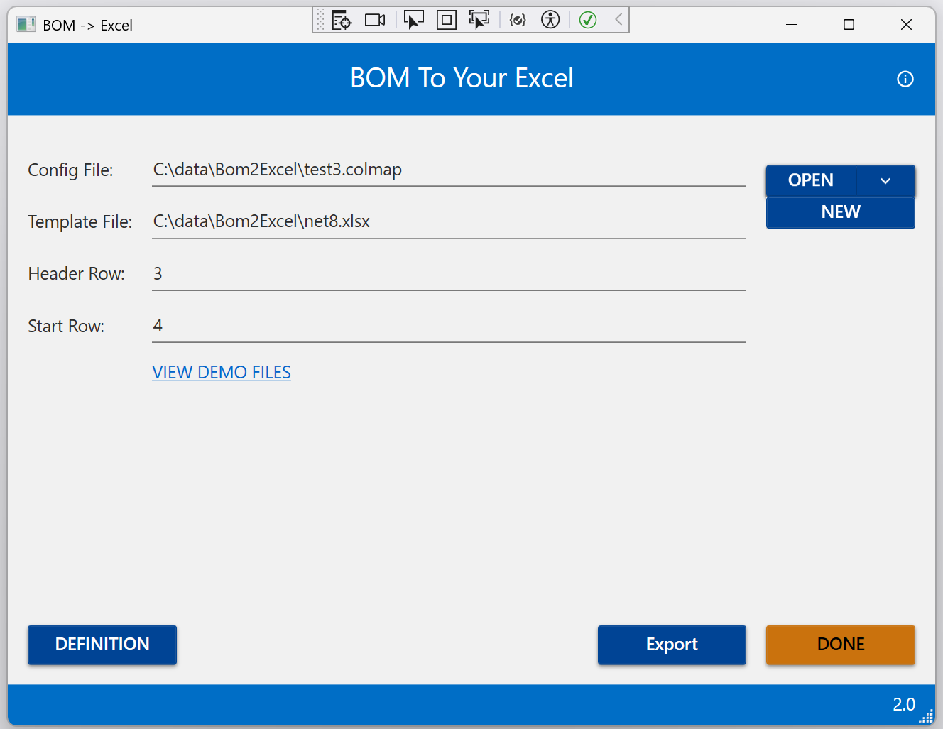 You can select your configuration file and click export to create an Excel report of your BOM.