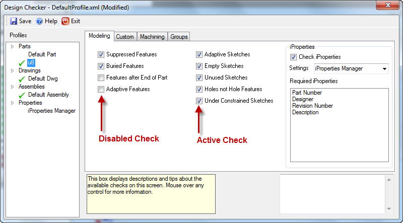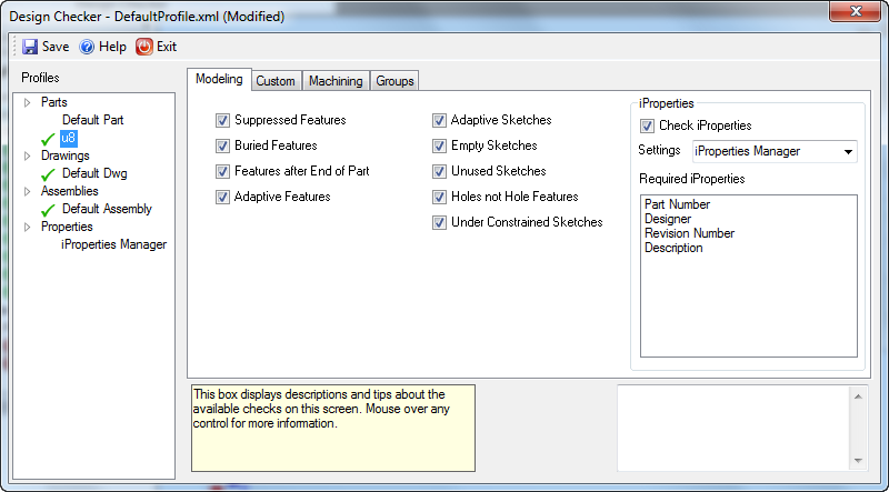 1.0.15 Support Inventor 2024. 1.0.14 Fix an update status issue when save a drawing document that has revision tags. 1.0.13 Support Inventor 2023. 1.0.12 Support Inventor 2022. 1.0.11 Support Inventor 2021. 1.0.10 Support Inventor 2020. 1.0.9 Enable the Design Checker Results browser even the Enable LiveCheck is unchecked. 1.0.8 Enable the addin for Inventor 2019. 1.0.7 Fix a bug when double click gauge may raise error. 1.0.6 Enable the addin for Inventor 2018. 1.0.5 Enable the addin for Inventor 2017. Fix a bug that when do shrinkwrap it raise error. Fix a bug so that when Live Check is checked it will re-check a document when it is just opened.. 1.0.4 Enable the addin for Inventor 2016. Fix a bug that live check indicators are not hidden when their related documents are deactivated. Fix a bug so that the Overlay View would not be regarded as the Overlapping Views failure. 1.0.3 Enable the addin for Inventor 2015. Fix a bug that when new an assembly profile there is an unassigned check (Assembly Constraints). 1.0.2 Fix a bug that Hole Size Increments numbers causes exception in French OS. Fix a bug that returns unnecessary failure for weldment component. 1.0.1 Fix a bug which returns wrong hole accessibility result. 1.0.0 Initial release. |