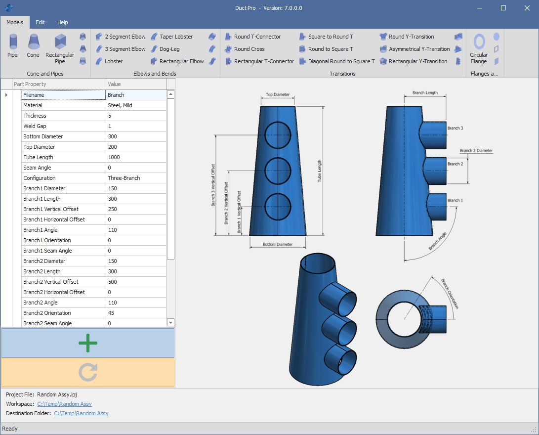 Duct Pro runs side by side with Autodesk® Inventor® and automates the creation of standard sheet metal duct components.