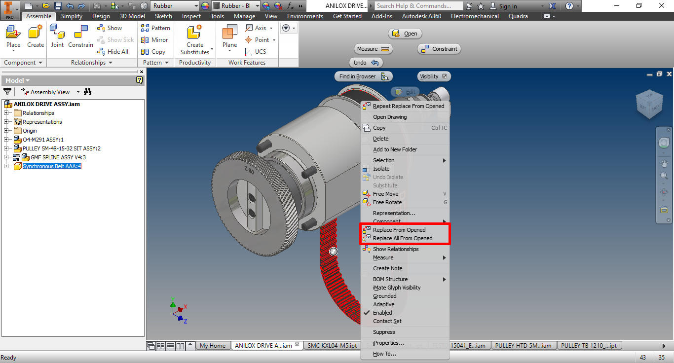 Add-in allows replacing Parts and Sub-Assemblies in an Active Assembly with one of the files currently opened in the background, while also leaving as many constraints in place as possible.