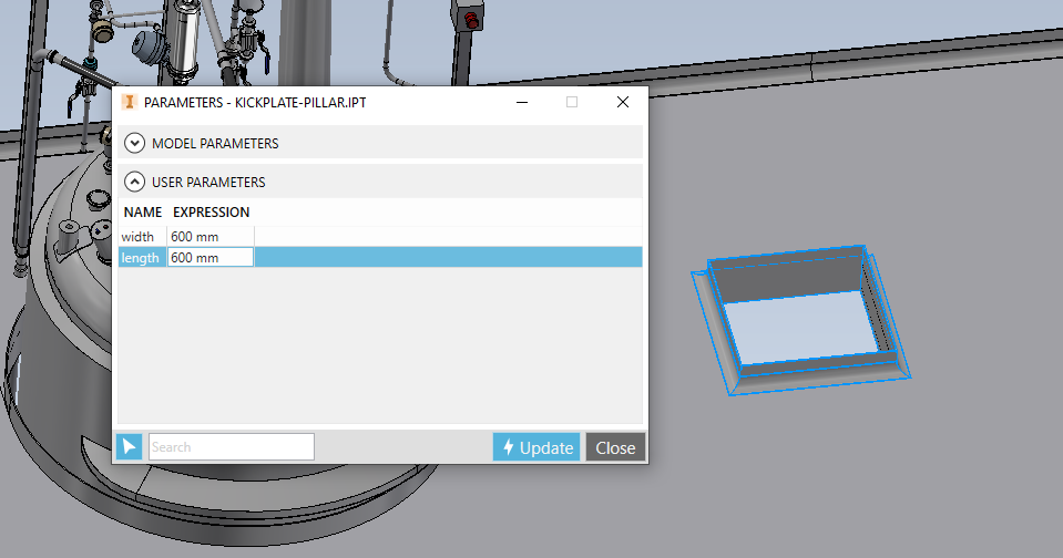 Simply select an occurrence from your graphics window or the model browser and a list of its model and user parameters will be displayed for you to quickly modify and see changes reflected instantly at the top level assembly without the need of opening the occurrence in a new window or entering edition mode.