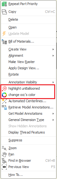 Highlight non-ballooned components – it will highlight components that don’t have balloons in the selected view/views or in all views in the active sheet to help the user place new balloons.