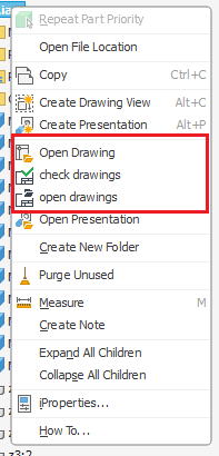 Open drawing command functionality extension – Users can select multiple components in the assembly and use the standard open drawings command to open it all with one click – it works like standard functionality – so it opens a drawing named as part stored in the same location. It will use the drawing reference property if it was set. For Autodesk® Vault™ projects it will acquire documents from Vault to open.