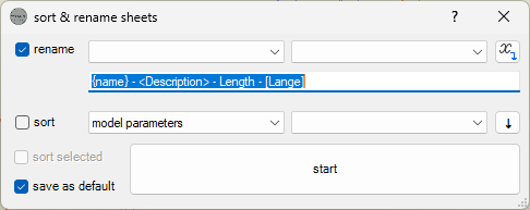 Sort & rename sheets – fully customizable tool for renaming and/or sorting sheets in the active drawing document. Users can use iproperties, parameters and even title block fields to create naming schemas and sorting scenarios. Users can sort only selected or all sheets in the drawing. Thanks to custom compare, it sorts numbers stored as expressions even if it is combined with non-number chars.