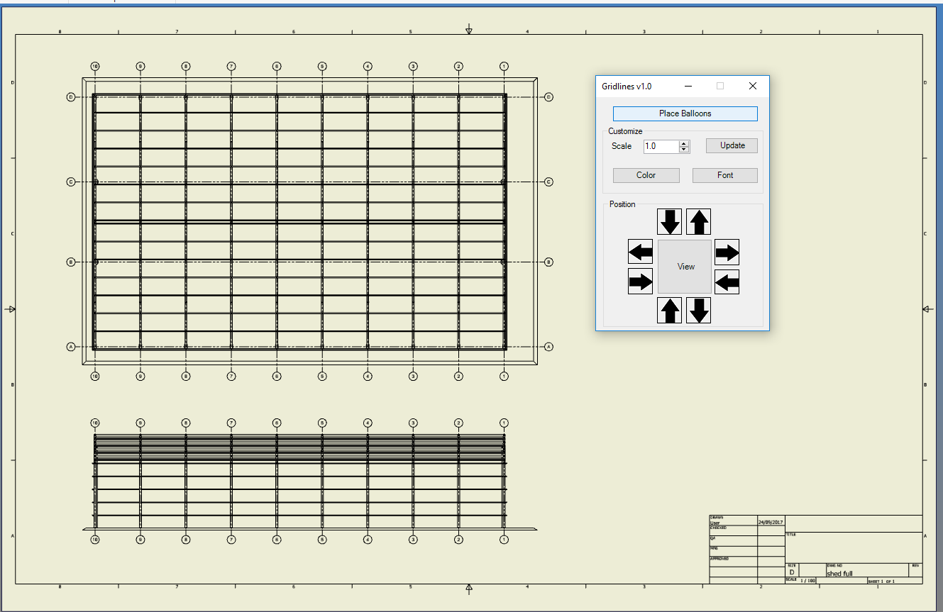 The Gridlines addin has the function of adding balloons (as sketched symbols) at the end of each gridline, thus automating the annotating. A gridline is a workplane projected in a drawing view. Therefore, the user must have the workplanes created, that will represent the gridlines, and projected in the drawing sheet.