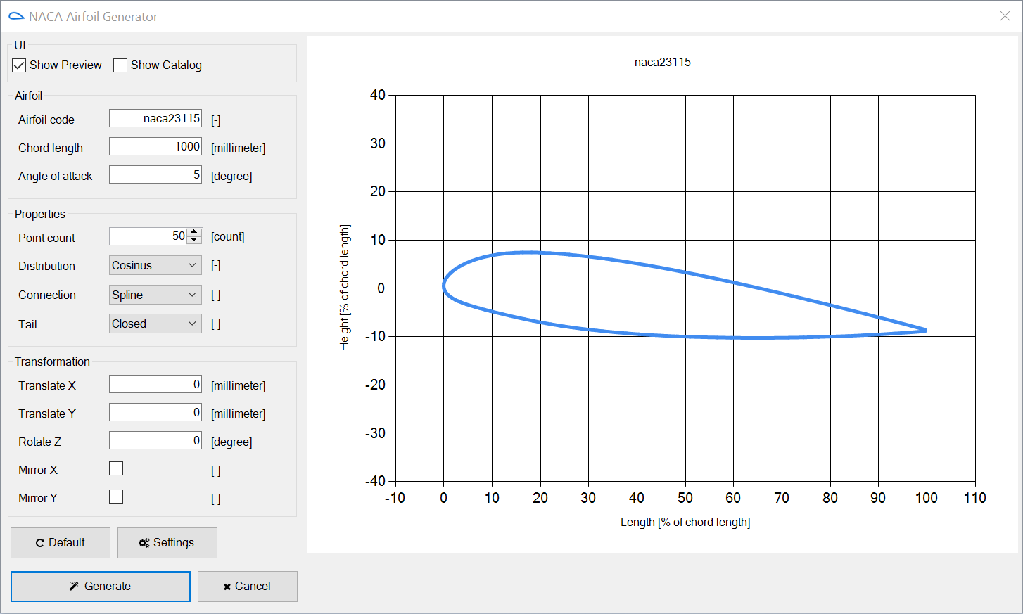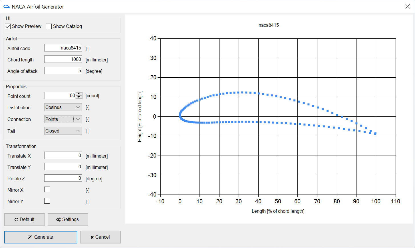 Use huge catalog with more like 1600 most popular Airfoils with predefined points