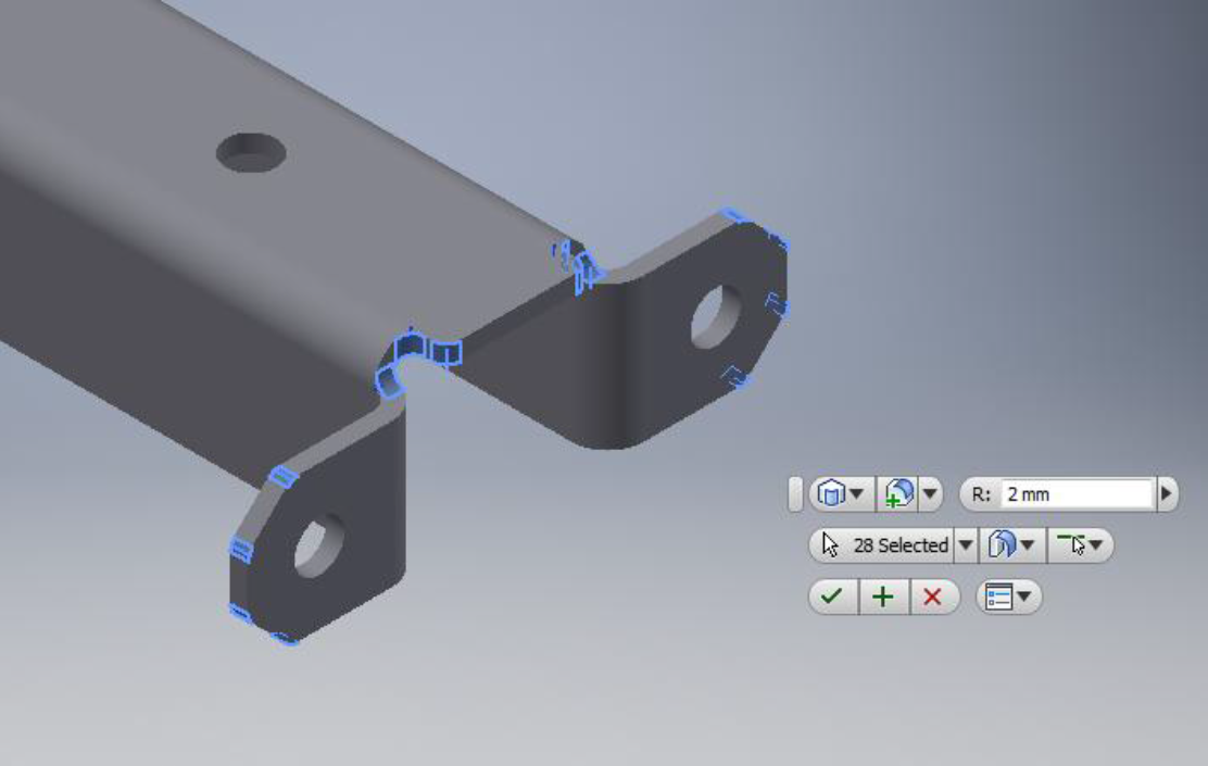 When the user click on the button “Remove Corners”, it will select the external edges and launches the UI to set radius. User can set the radius needed for fillet. Important aspect of the addin is that it distinguishes the internal edges with external edges. And only enables external edges to set the fillet.