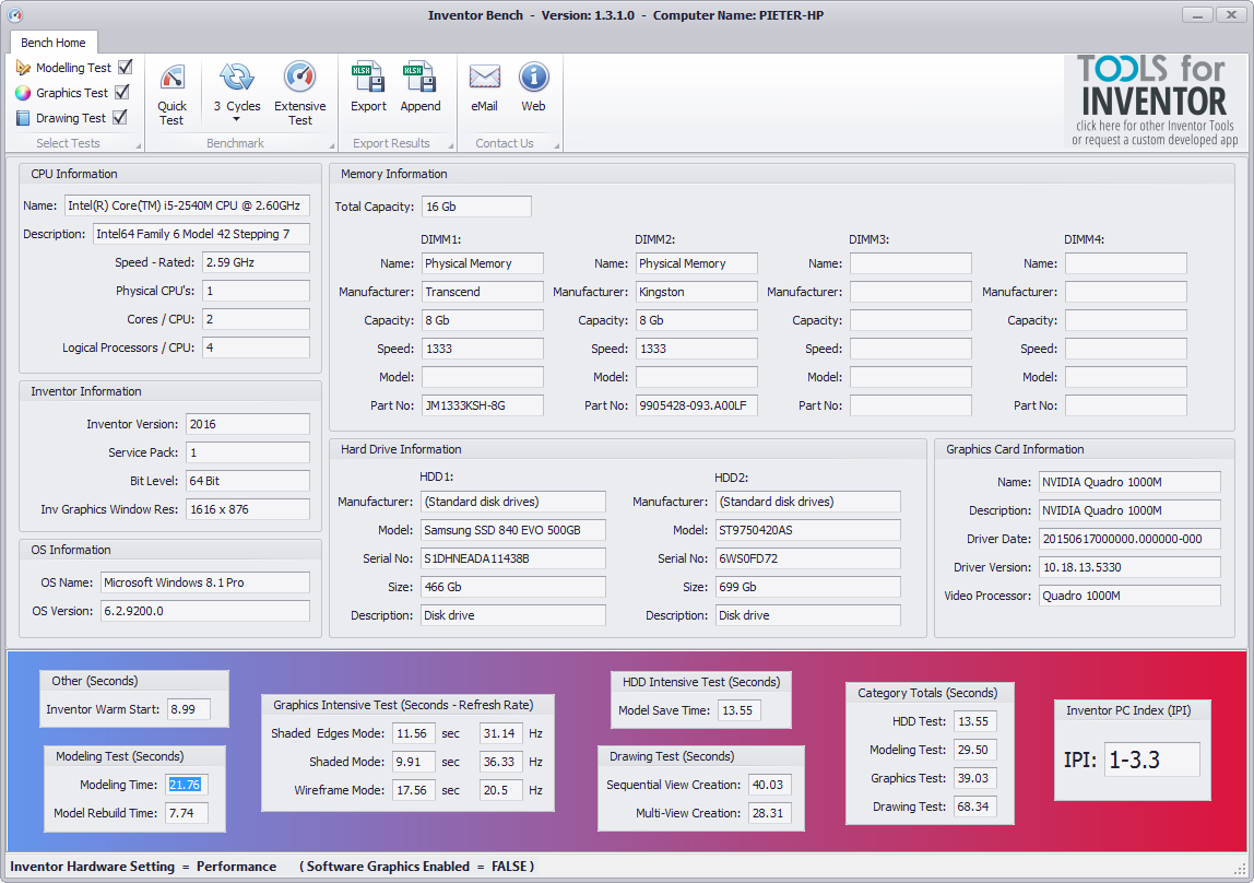 its help me deside what hardware need to upgrade for my laptop to get performance on "AD invntor".
