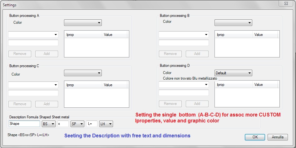 It is possible to configure and then Select one of the four pre-set "treatments" via the configuration menu Automatic color change, creation of customized iProperties and their automatic compilation to be created and the relative value.