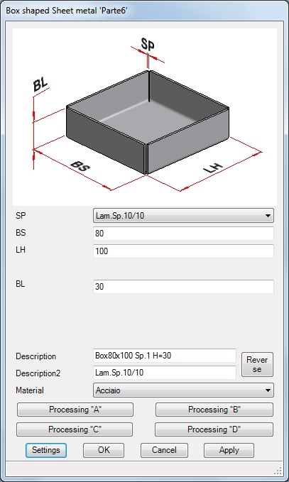 This App allows you to speed up the creation of seven new sheet metal parts by means of an intuitive graphical interface for entering data.