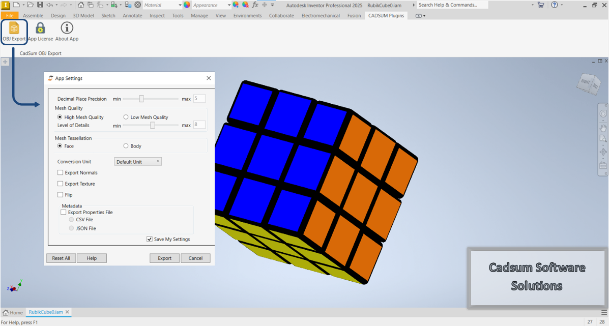 Cadsum OBJ Exporter for Inventor® - Paid