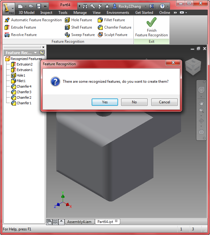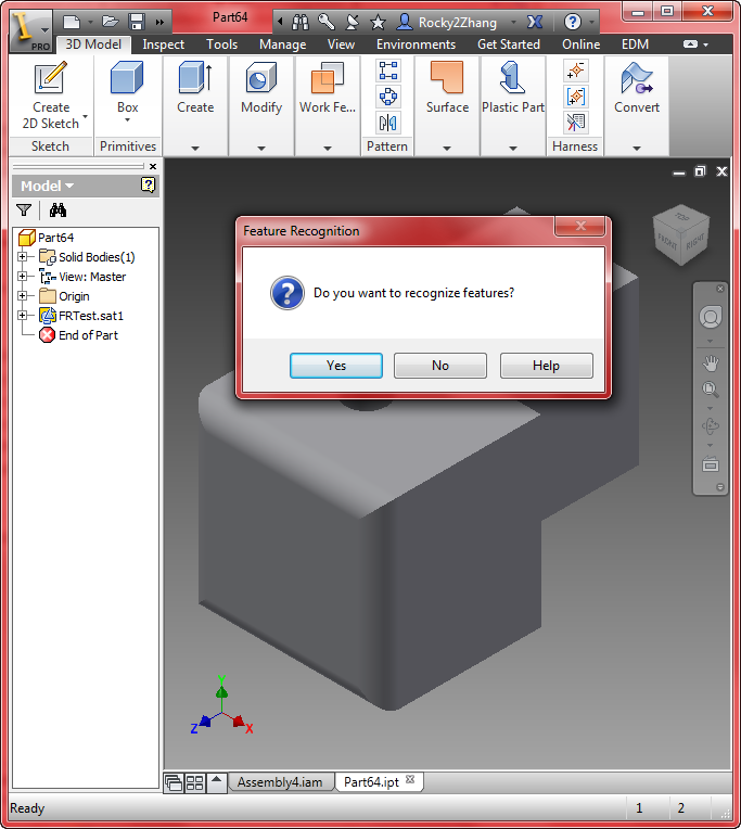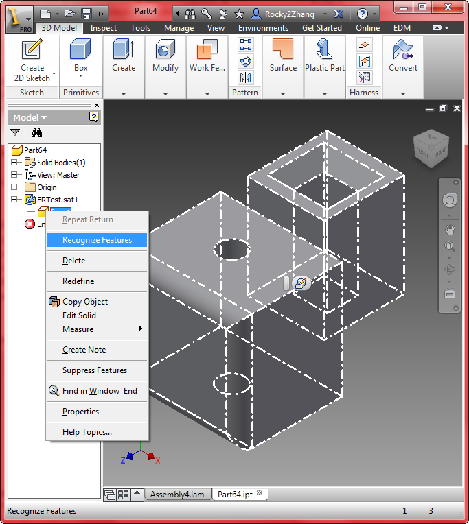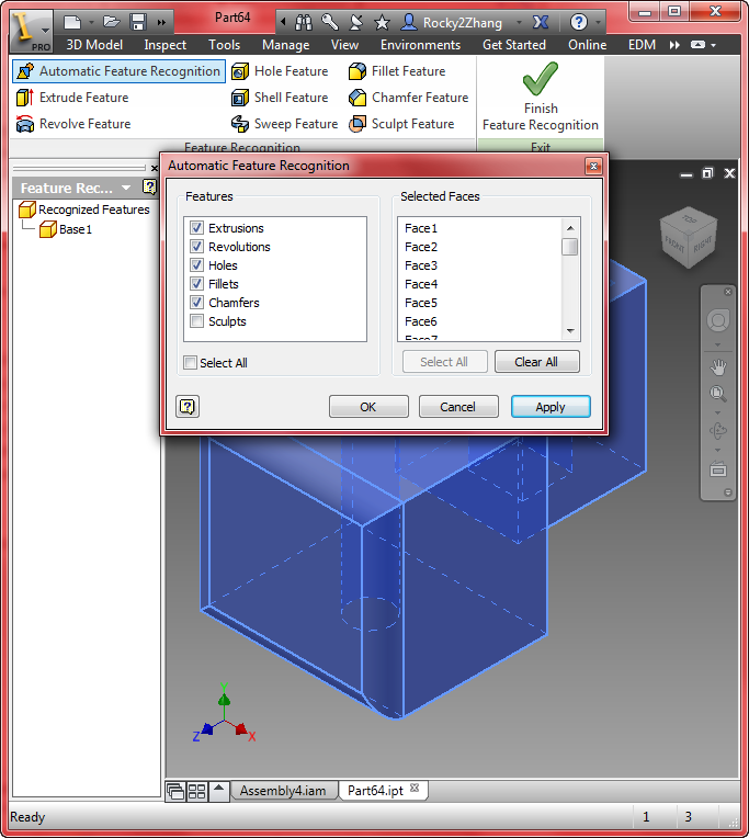 I am using Inventor 2024. Right clicking on base model and selecting feature recognition freezes the software